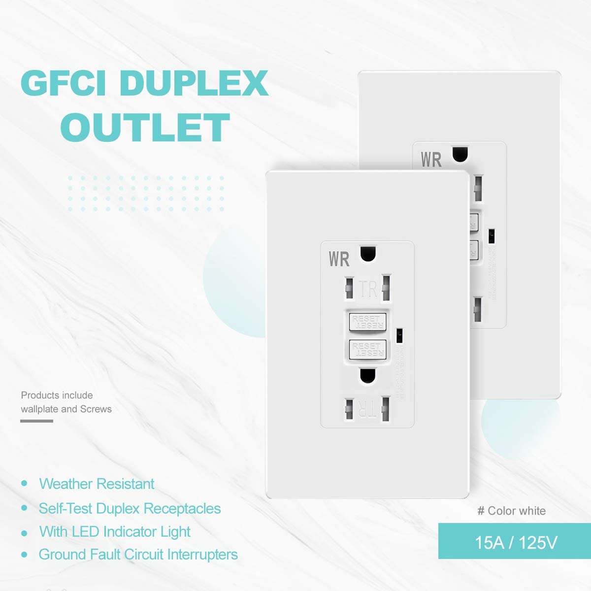 15A GFCI Self Testing Outlet WR TR Weather Resistant Tamper Resistant Receptacle Ground Fault Circuit Interrupter Outlet